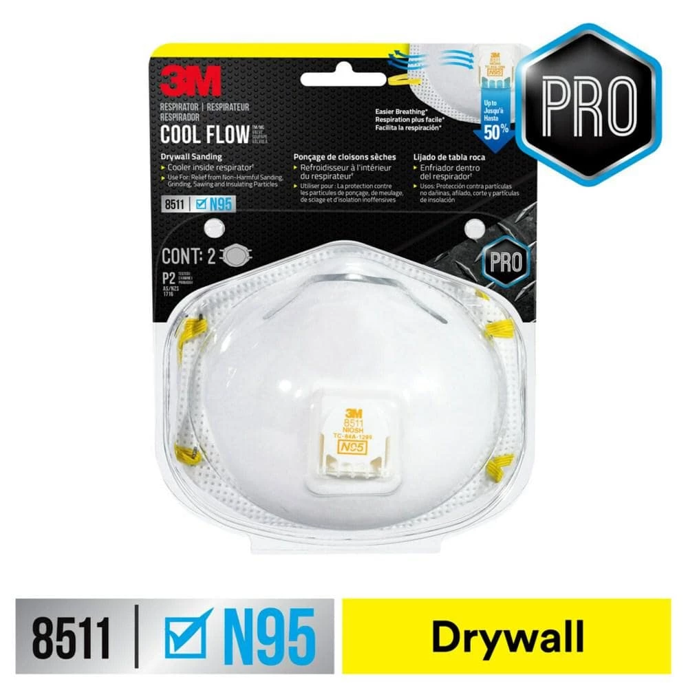 Part of our Pro Series, the 3M Cool Flow Valve Particulate Respirator 8511 is designed with the pro in mind to help bring you protection and comfort. The Cool Flow Exhalation Valve helps release warm and moist exhaled breath from inside the respirator. This N95 respirator features Advanced Electrostatic Media that enhances the capture of airborne particles and is designed for easy breathing. An adjustable M-noseclip helps provide a custom, secure seal. Whether you’re hanging drywall or sanding a floor, rely on the trusted protection of the 3M Cool Flow Valve Particulate Respirator 8511.