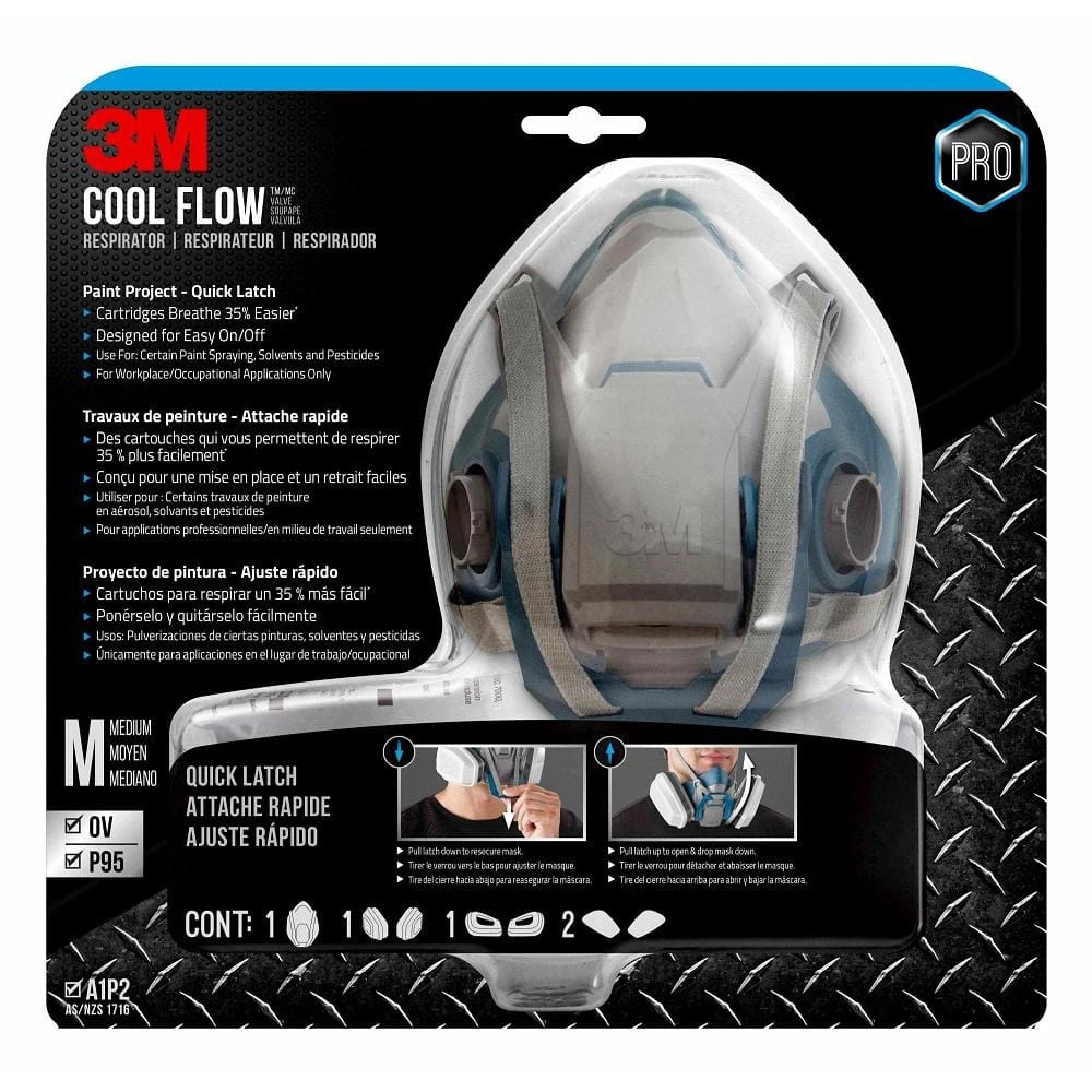 The 3M Paint Project Respirator with Quick Latch combines comfort, durability and stability. The proprietary quick latch design offers an easy, one-hand touch drop-down mechanism for putting the face piece on and off while moving in and out of contaminated area. With a resilient silicone face seal providing comfort, durability and stability – the 3M Paint Project Respirator with Quick Latch is an excellent choice in respiratory protection for the professional.