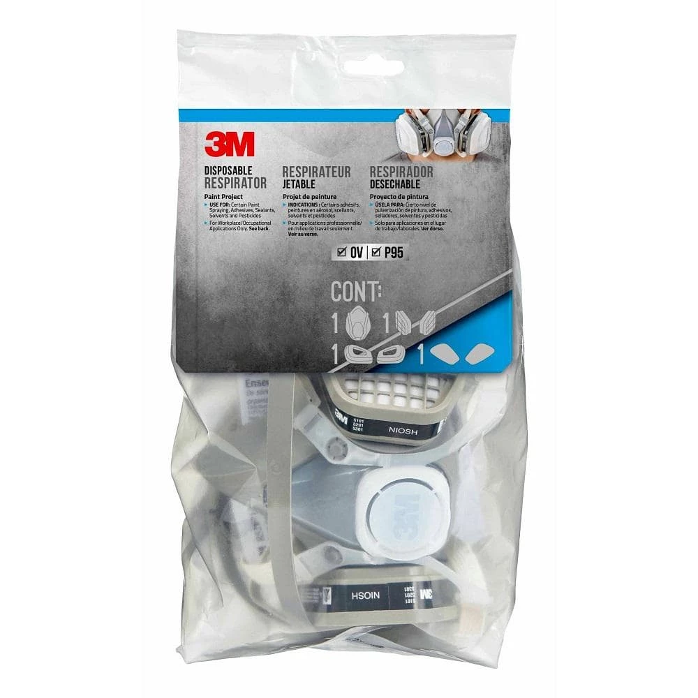 The ready-to-use 3M 52P71 Disposable Respirator for paint projects comes complete to help protect against certain respiratory hazards encountered during painting. This respirator is designed for spray painting and jobs that require solvents. The 3M Organic Vapor Cartridges have a swept back design to help provide balance, comfort and greater visibility while helping to provide effective filtration on the job. When you’re handling potentially harmful chemicals, it’s important to help protect yourself-so consider using the 3M 52P71 Disposable Paint Project Respirator.