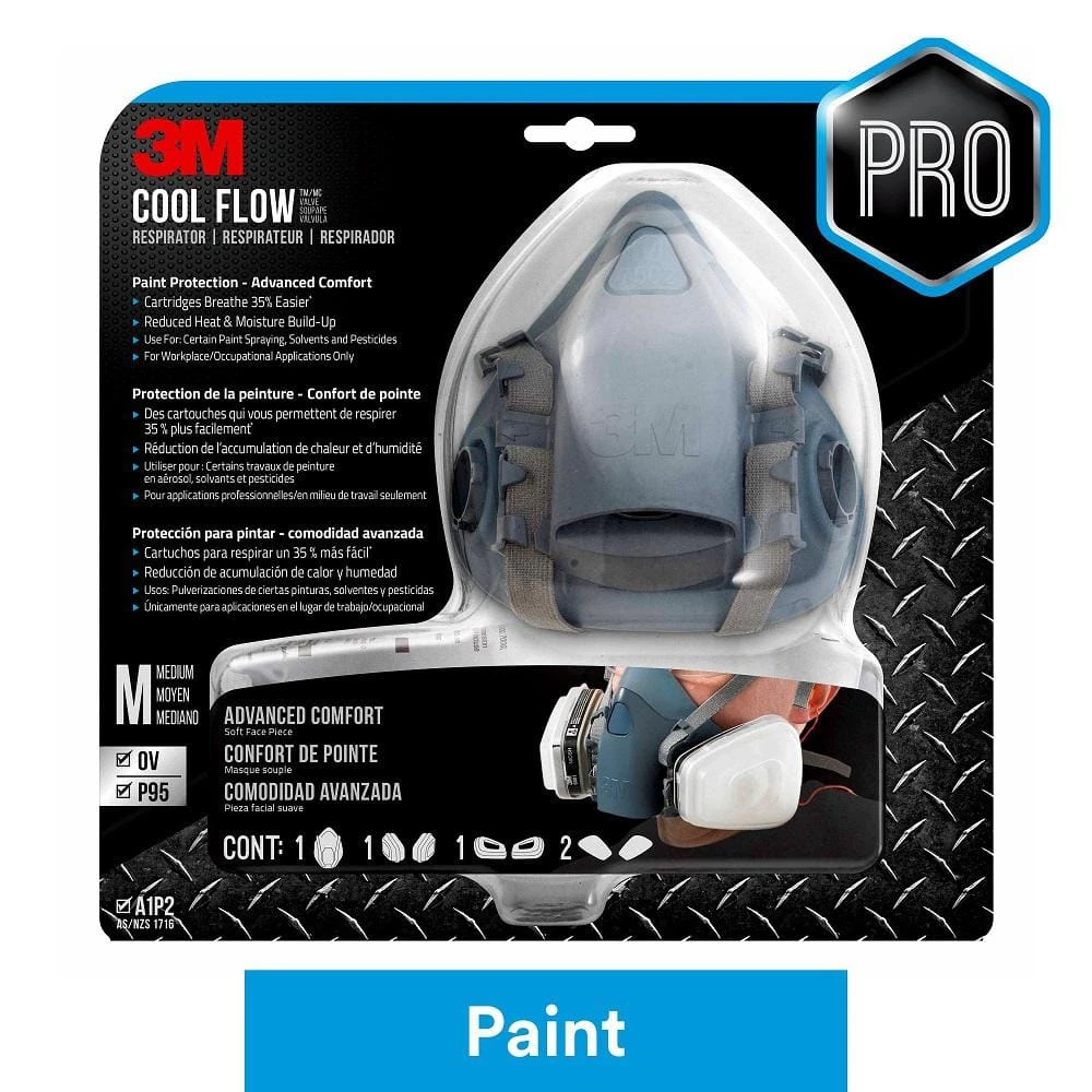 Part of our Pro Series line, the 3M Cool Flow Valve Respirator Paint Protection – Advanced Comfort 7512 helps keep you protected and focused on the job with premium comfort features. Designed for professionals, this reusable respirator is recommended for spray painting and jobs that require solvents. The balanced design helps provide lasting comfort, and Cool Flow Valve technology for easy breathing, so you can stay comfortable on the job. Big projects start with solid safety plans, so give yourself and your crew the respiratory protection of the 3M Cool Flow Valve Respirator Paint Protection – Advanced Comfort 7512.