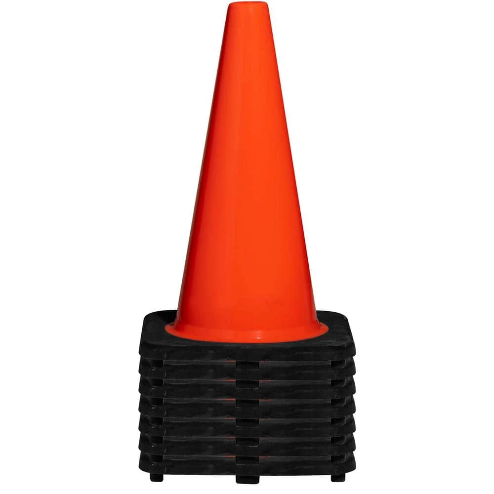 Brilliant fluorescent Orange Traffic Cones come with UV inhibitors to prevent fading in the sun. These 18 in. cones provides superior flexibility in heat and cold, and they bounce back from an impact. The cleated black base allows firm grip to the road by creating low center of gravity for maximum stability.