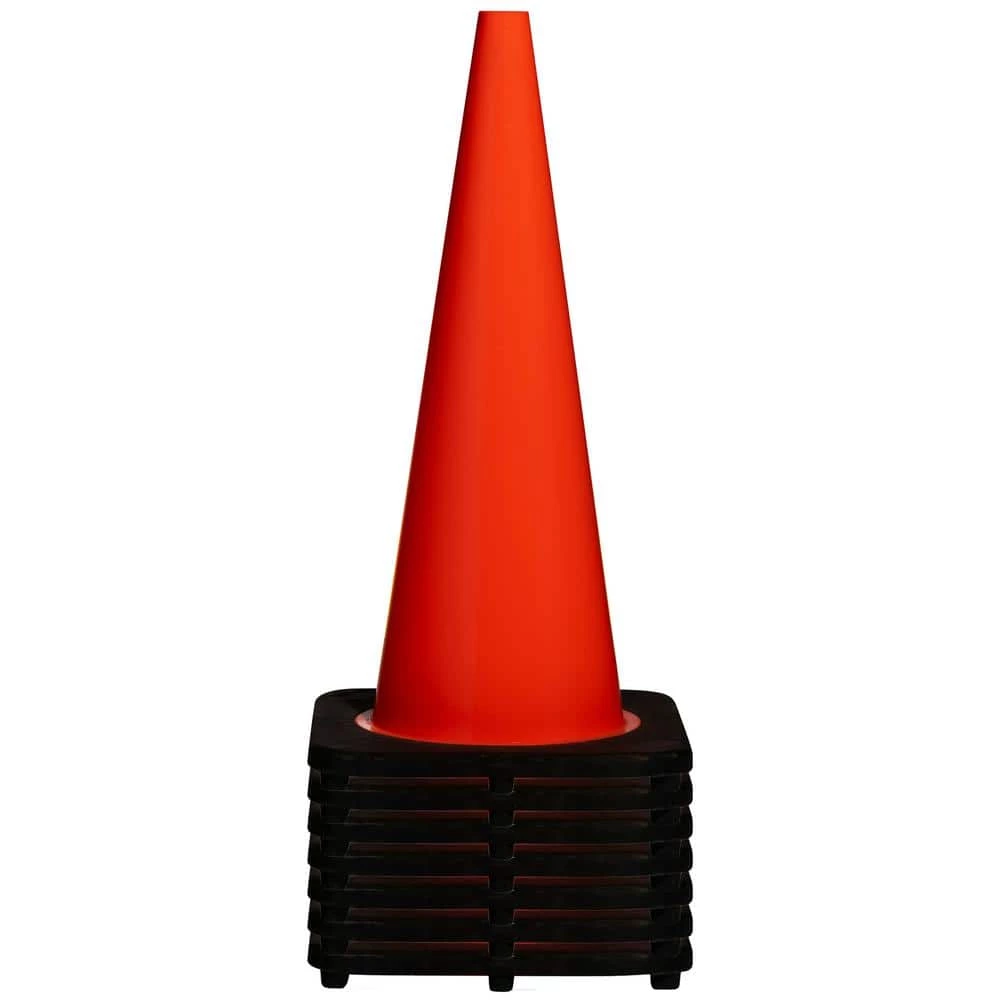 Brilliant fluorescent Orange Traffic Cones come with UV inhibitors to prevent fading in the sun. These 28 iin. cones provides superior flexibility in heat and cold, and they bounce back from an impact. The cleated black base allows firm grip to the road by creating low center of gravity for maximum stability.