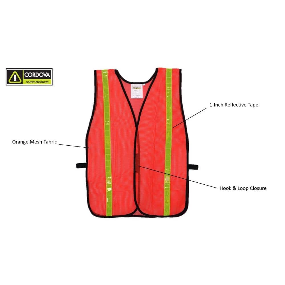 You’ll feel seen and safe wearing Cordova Safety Products’ general purpose non-rated high visibility orange mesh safety vest. It features 1 in. of silver reflective tape designed to provide 360 degrees of conspicuity, allowing you to be seen, as well as a easy closure to safely secure the product. Grab yours today.
