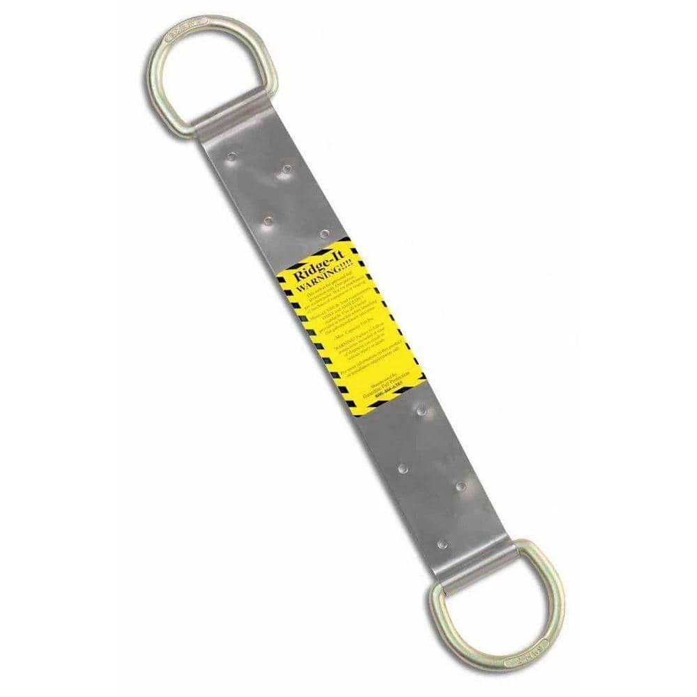 The Guardian Fall Protection RIDG-2 Ridge It Anchor is designed for permanent use on wood rooftops and it is easy to install. This version of the Ridge It Anchor has a D-ring located on both ends of the anchor. This product meets all standards for fall arrest. The product itself possesses a discrete design and is composed of stainless steel.