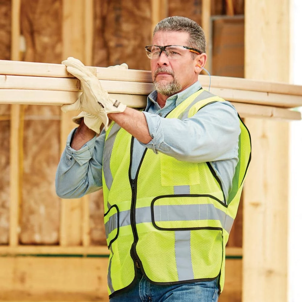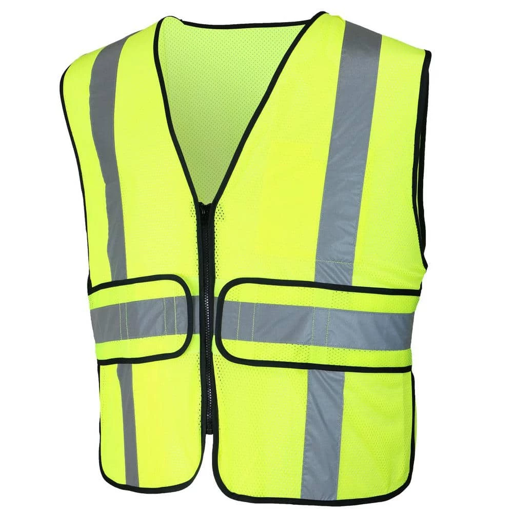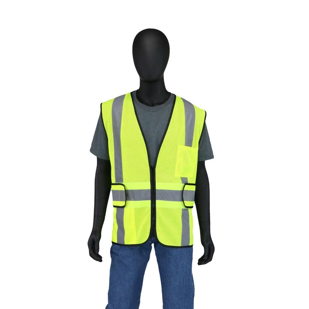 ANSI Class 2 Type R Hi-Viz Yellow mesh vest. This vest is equip with 2 in. silver reflective tape and made with breathable, lightweight mesh fabric. There is a zipper in the front for a secure closure, break-away points for added safety, along with 1 interior and 1 exterior pocket.
