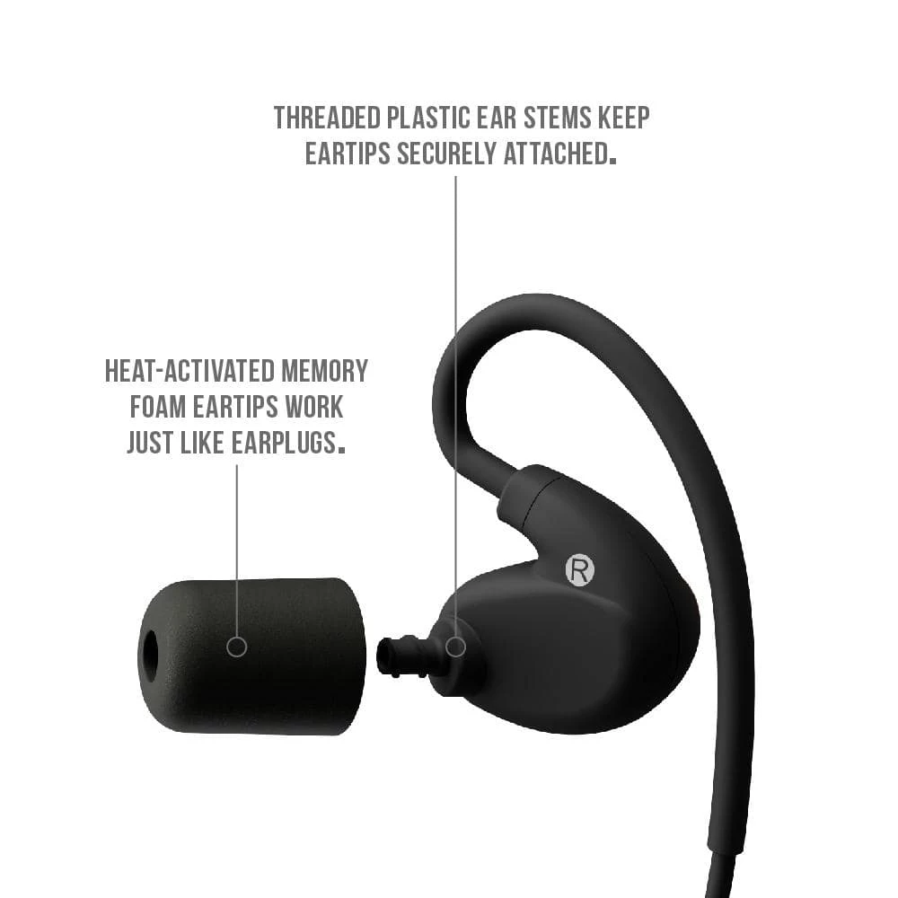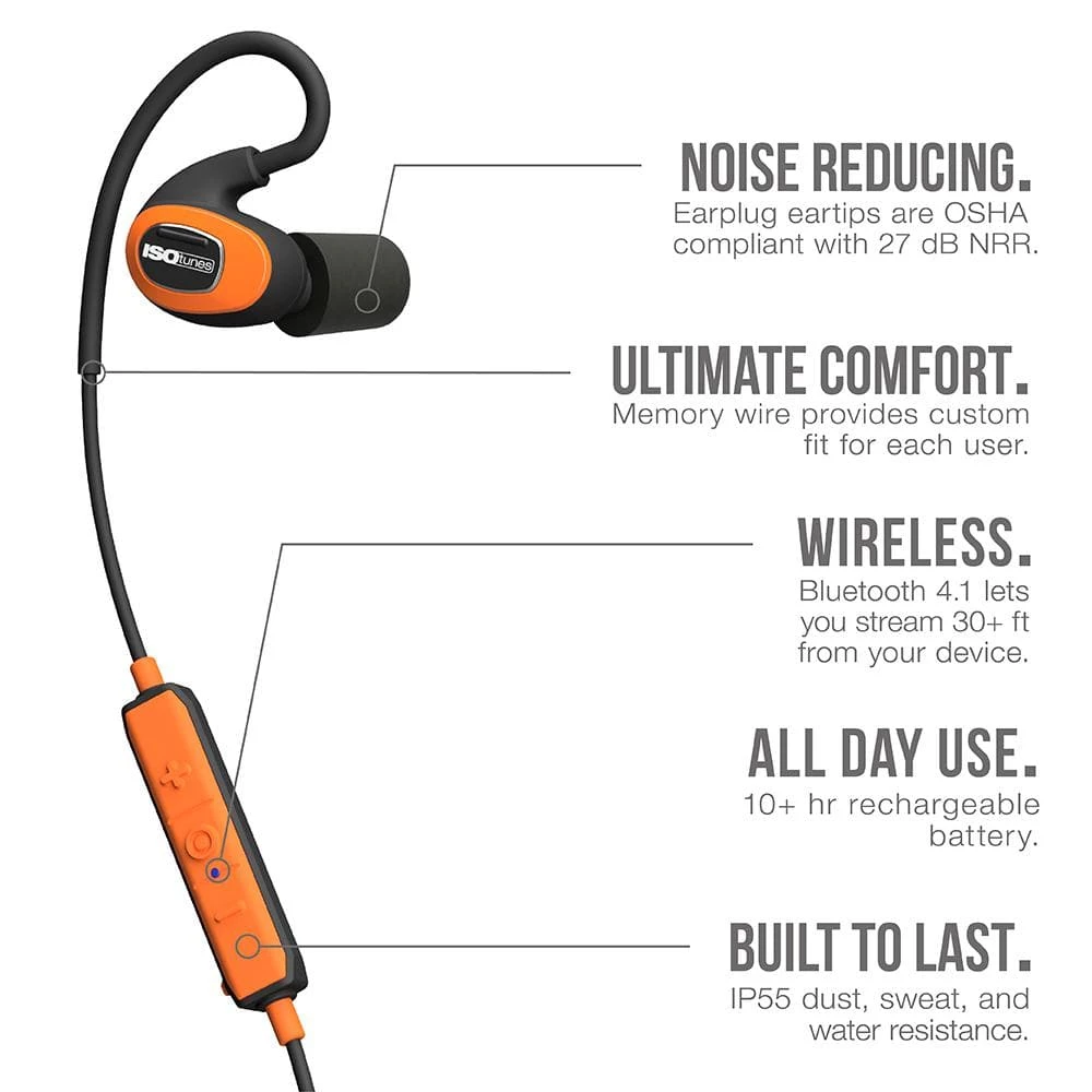 ISOtunes PRO is a rugged Bluetooth hearing protector designed for all-day use by professional woodworkers, contractors, lawn maintenance professionals, and anyone using power tools or other loud equipment. These wireless work headphones will protect your hearing while increasing your productivity. ISOtunes PRO’s 27 dB Noise Reduction Rating is coupled with a steady-state noise cancelling microphone for clear calls in loud environments, premium aptX streaming sound quality, custom fit memory wire for stability, IP55 dust, water, and sweat resistance, and Bluetooth 4.1.This product is OSHA compliant for use in the workplace and comes with 3 sets of proprietary foam eartips along with a pair of silicone triple-flange eartips.