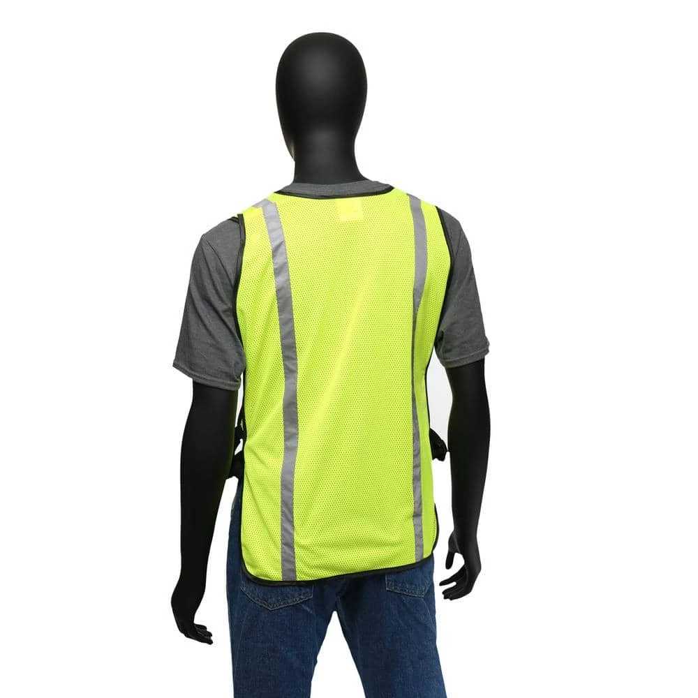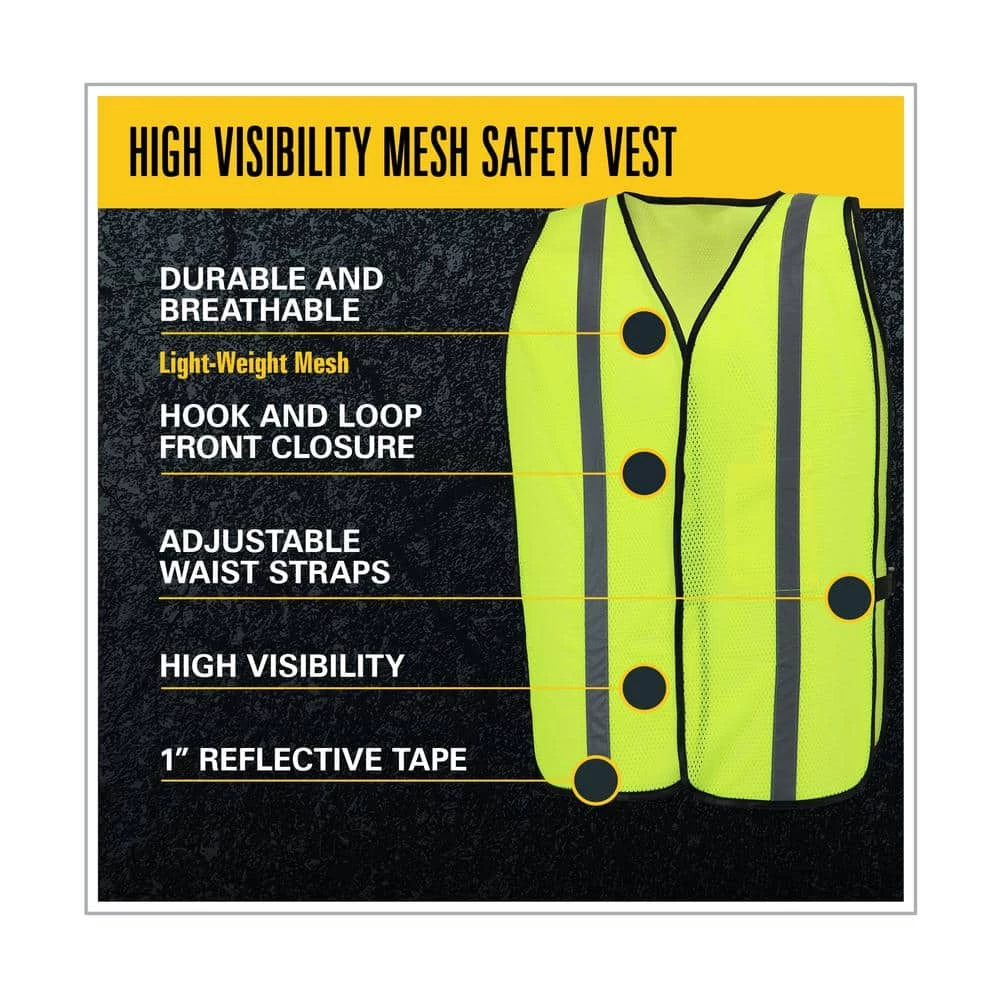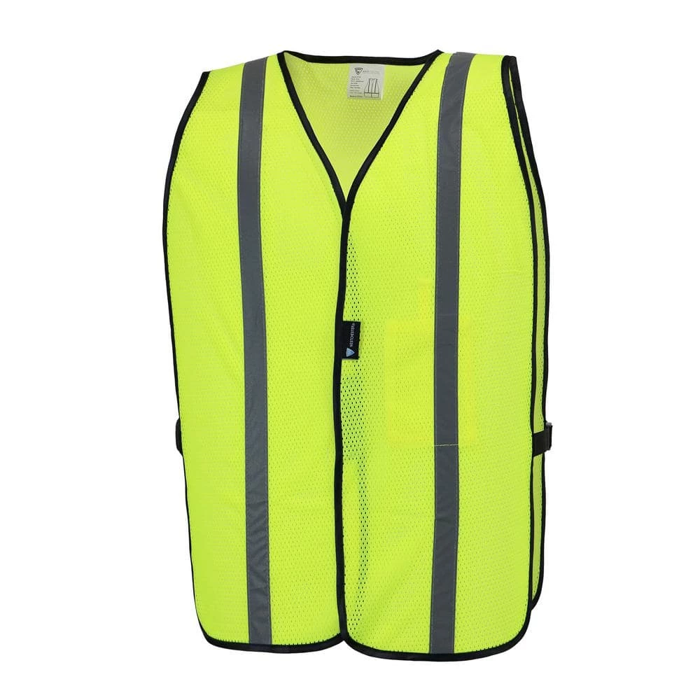 High visibility mesh vest with 1 in. W silver reflective tape to ensure worker is completely visible. Adjustable side straps and hook and loop front closure keeps vest secured around user. Internal pocket allows user to store a device.
