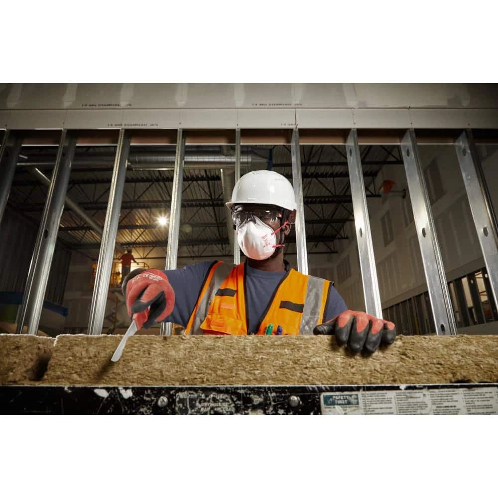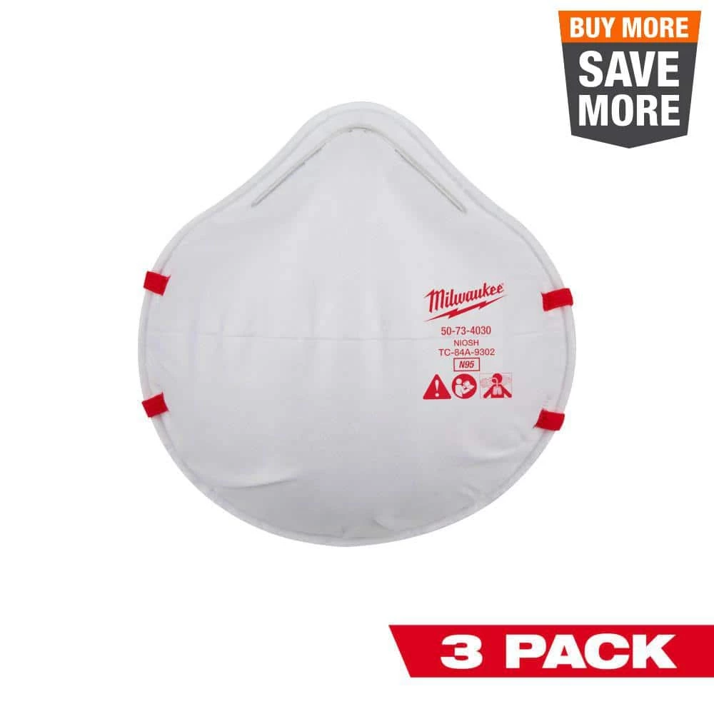 The Milwaukee 3-Pack N95 Respirator is designed to stay comfortable all day on the jobsite. The N95 respirator mask features 2 soft adjustable straps and a flexible nose bridge, providing users a better fit. Additionally, the straps have a staple-free attachment method to the face mask that reduces irritation from all-day wear. This respirator is NIOSH N95 approved to protect against non-oil-based particulates from sanding, grinding, sawing, and insulation particles.
