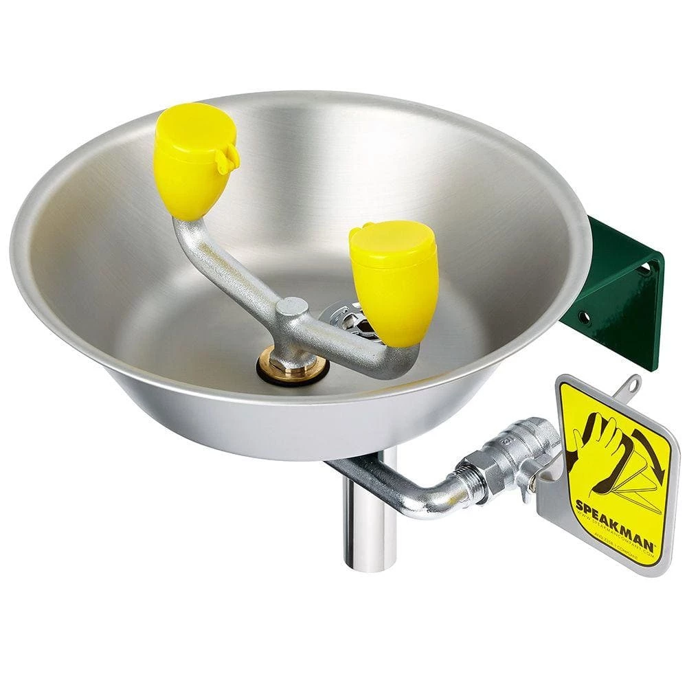 Speakman traditional series round bowl eyewash stations provide the highest level of performance. All traditional series eyewash stations feature dual aerated spray heads with automatic flow controls and flip top dust covers. The aerated water flow, a Speakman signature feature allows soft flowing water to provide a wider coverage, cleaning full facial areas. Additionally traditional eyewash stations are equipped with a stay open ball valve activated by a paddle handle allowing hands free operation once the eyewash has been activated. The SE-582 is a wall mounted unit with a stainless steel bowl. The SE-582 meets ANSI Z385.1 compliance & OSHA Compliance.