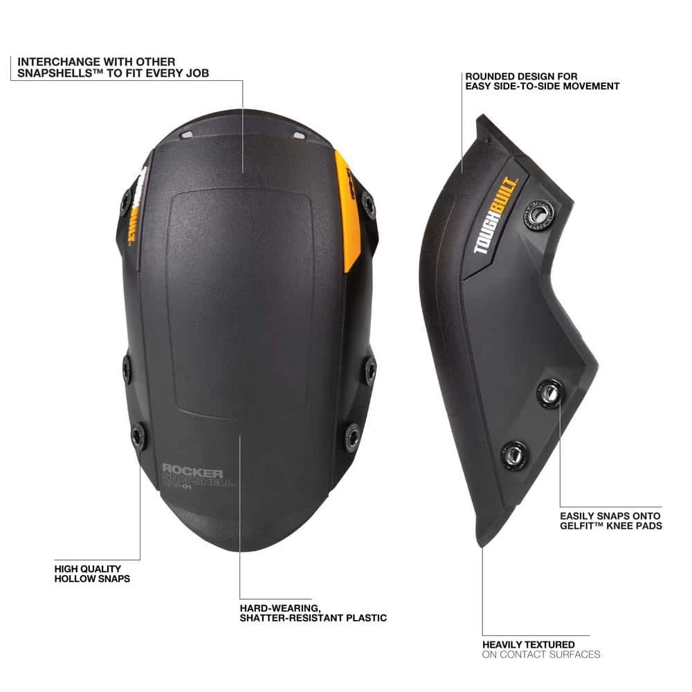 The Rocker SnapShell is the rigid removable shell in TOUGHBUILT innovative SnapShell kneepad line. Hard-wearing, shatter-resistant plastic protects the knee on the roughest terrain while enabling easy side-to-side movement. Combined with the ergonomically-designed GELFIT or FOAMFIT kneepads, TOUGHBUILT SnapShells create the most versatile kneepads on the market. Easily interchange with other SnapShells to create the perfect kneepad for every job. Never again will it be a difficult choice what kneepad is right for you.